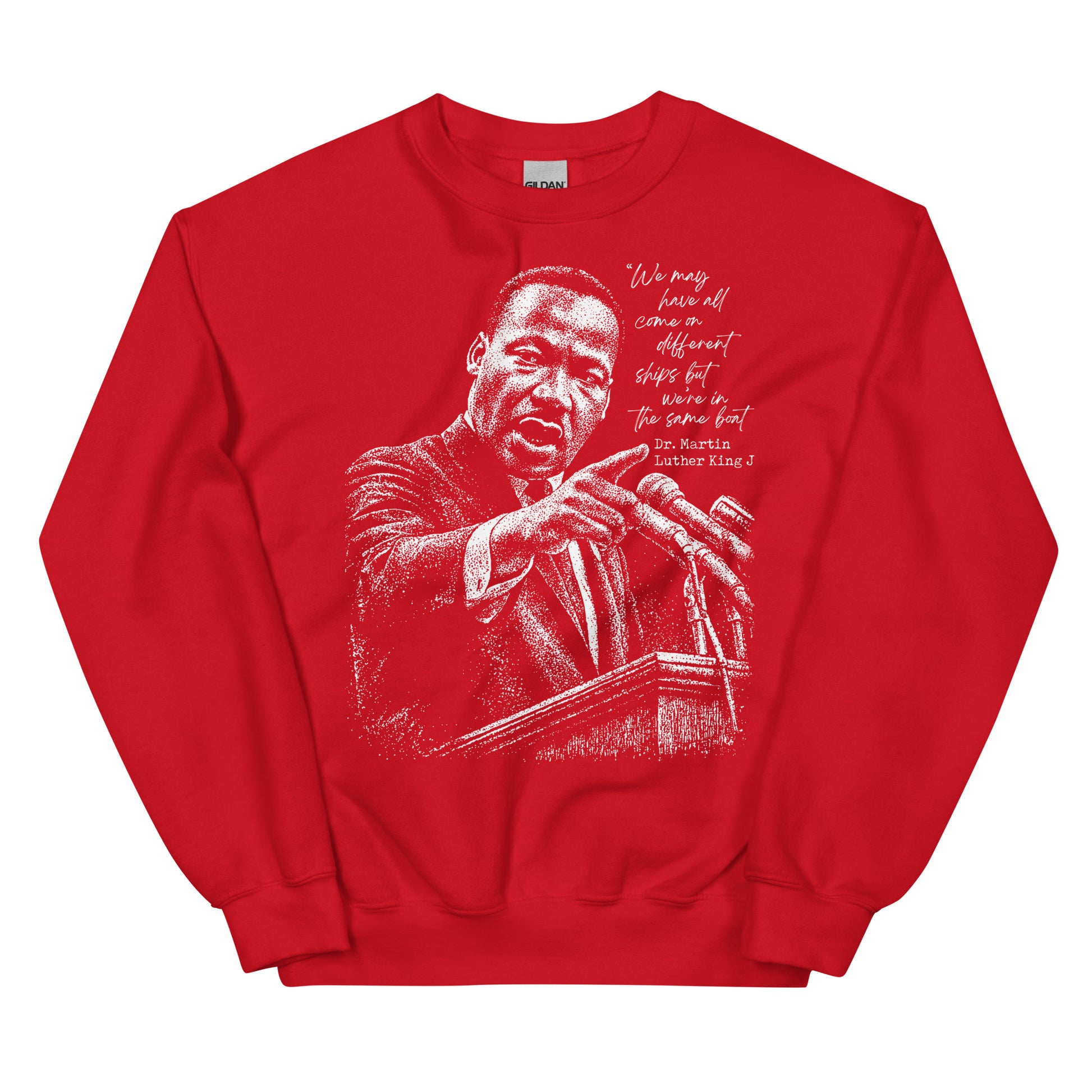 This MLK crewneck features a bold black-and-white design paired with one of Dr. King’s most powerful quotes: